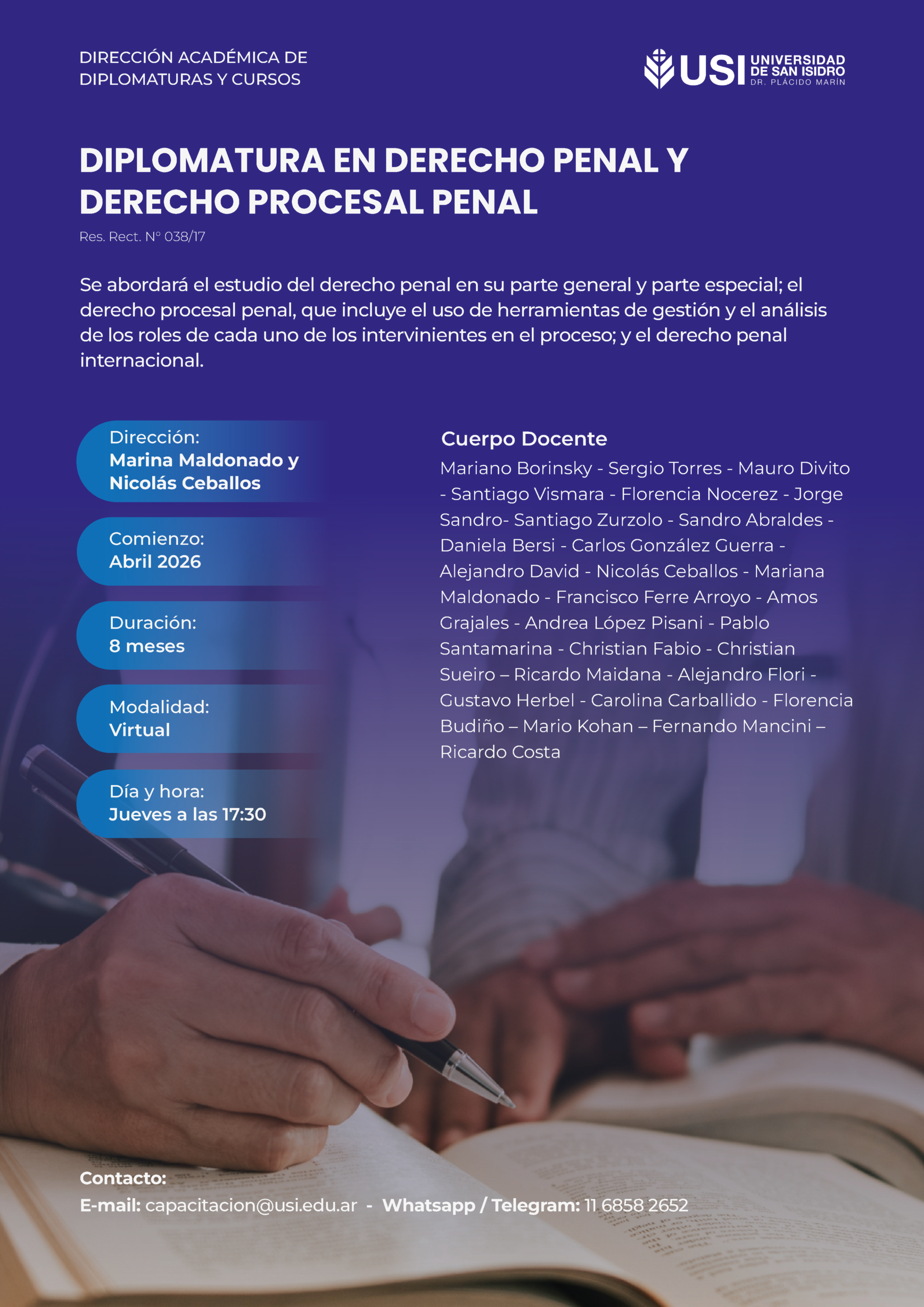 - Ministerio Público Fiscal de la Nación (MPF): sus integrantes se beneficiarán con un descuento del 20% en las cuotas (no incluye la Matrícula).